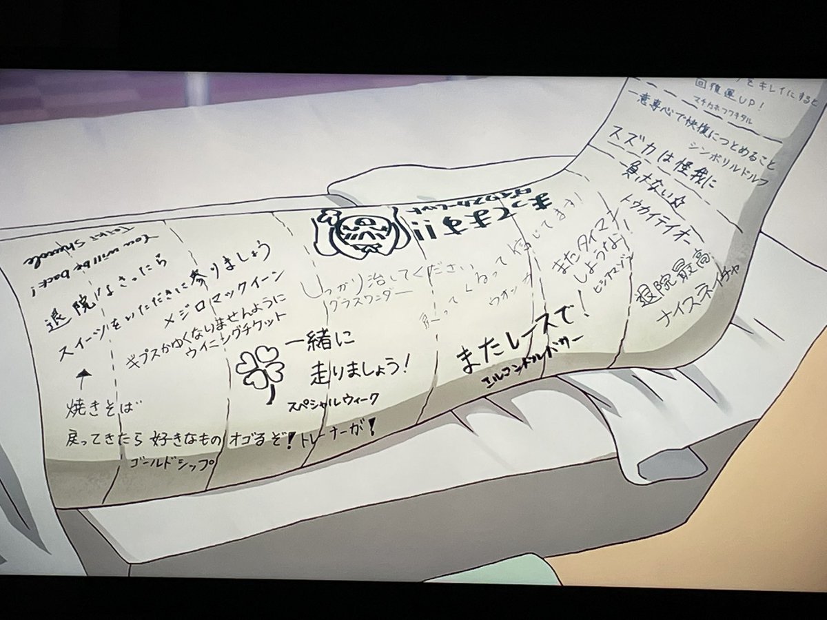 名無しのトレーナーウマ娘ってサインの練習とかもしてそう名無しのトレーナー俺も中学の時一生懸命サインの練習してたぞ!ふふふ…名無しのトレーナー先輩ウマ娘「デビュー直後には『かっこいい』サインとか『かわいい』サインとか書きたいと思うけど、悪いことは言わないからトレーナーさんと話し合って無難なのにしときな。いざ変えようと思っても意外とタイミングがないのよ……」(遠い目)名無しのトレーナーシャトル「オーウ…ウオッカさん頑張って英語筆記体でサイン書いてるけどスペルがめちゃくちゃデース…」名無しのトレーナーUottukaって書いてありそぅ