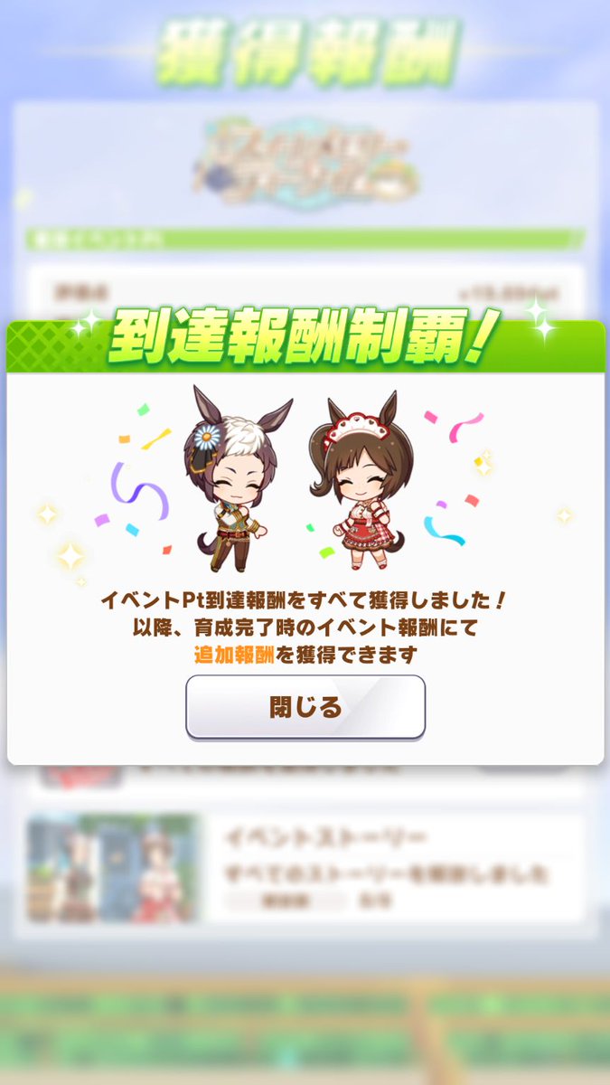 ・デート発生イベントでカーソルがちょっとズレてフラグ折った時ジュニア期前半でリタイアするか悩んだ育成だし、ここまで伸びたのは儲けもん