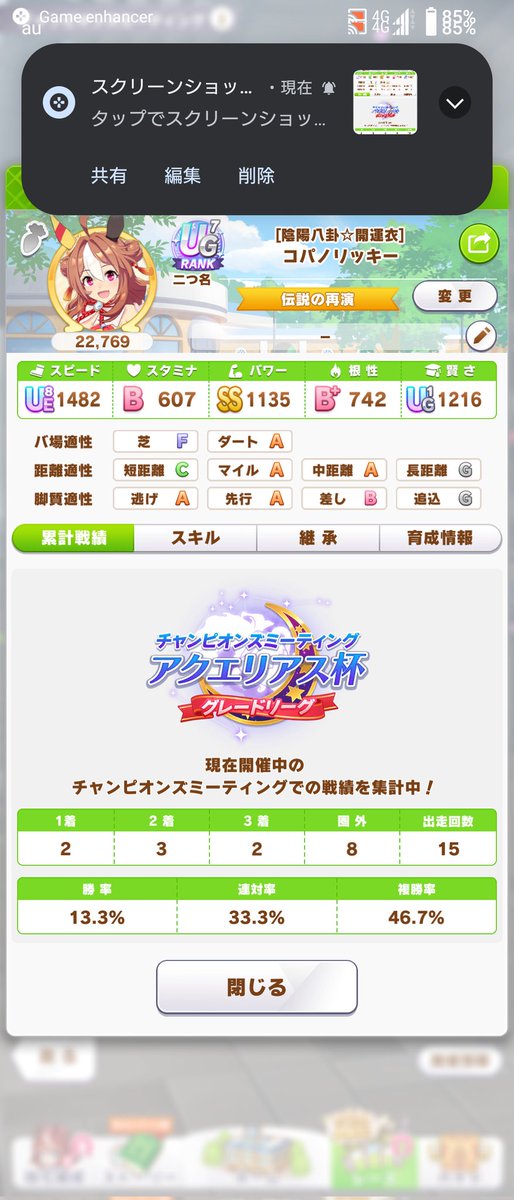 やっぱり育成していて思ったことですが緑スキル揃えるのが本当に大変ですもんね。スズカさんとか中々左回りをくれない…