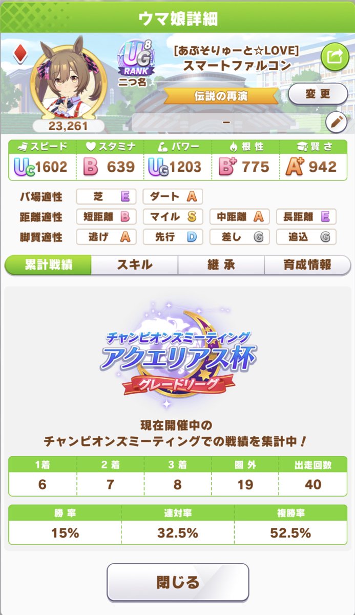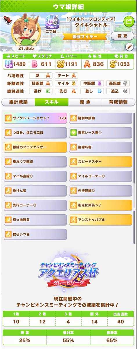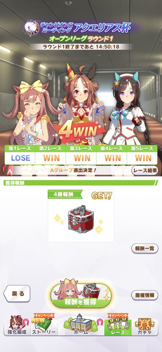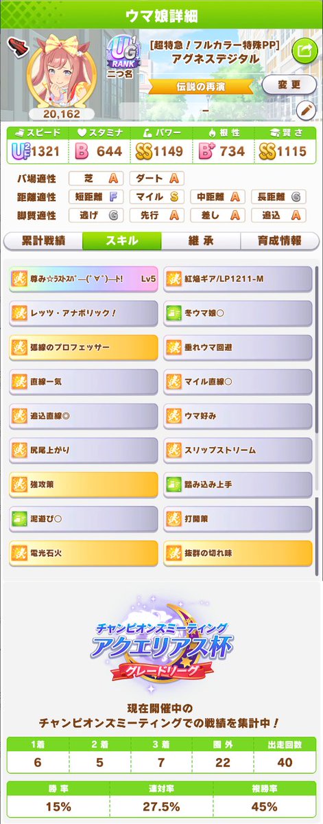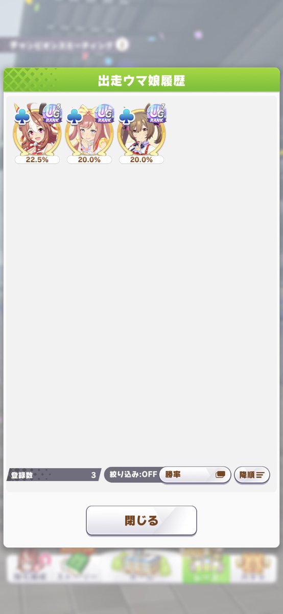 勝率90%はまあ決勝は行けるやろ608: 名無しのトレーナー 2023/02/18(土) 12:53:57.03 ID:19AKm2GGM33勝7敗だった お前らは?614: 名無しのトレーナー 2023/02/18(土) 12:54:48.35 ID:bI8JOdAGaデジたんとタルマエとタイキがいい感じに追い比べてくれるから