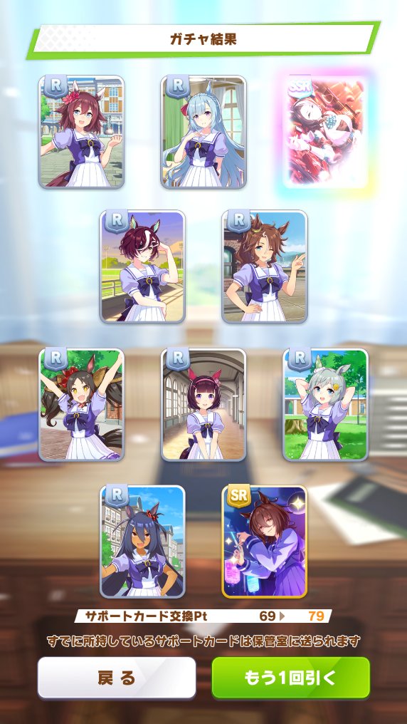 俺もすぐ逝く名無しのトレーナーいま自分が400連でラモーヌ0で400から600でやっと1枚でてくれたぞ・・