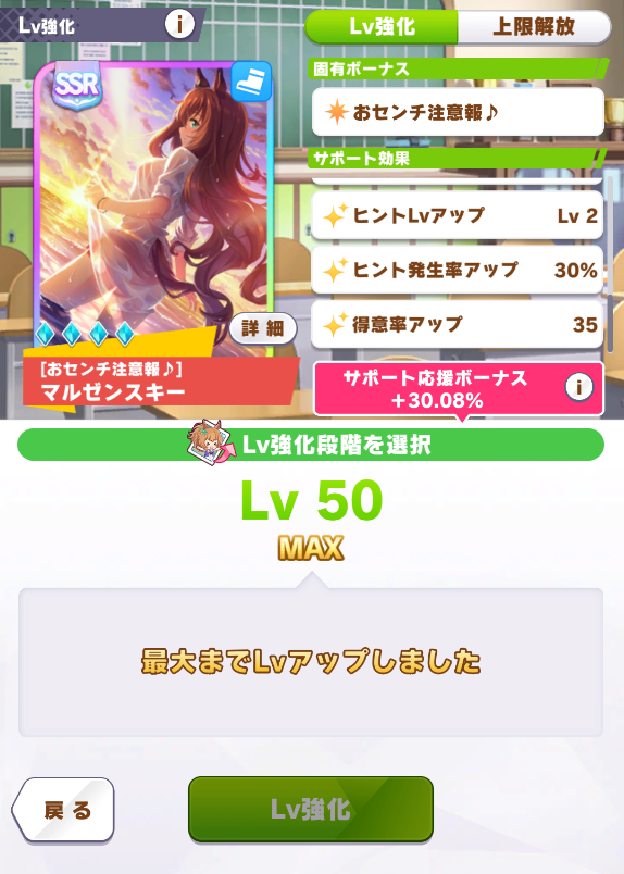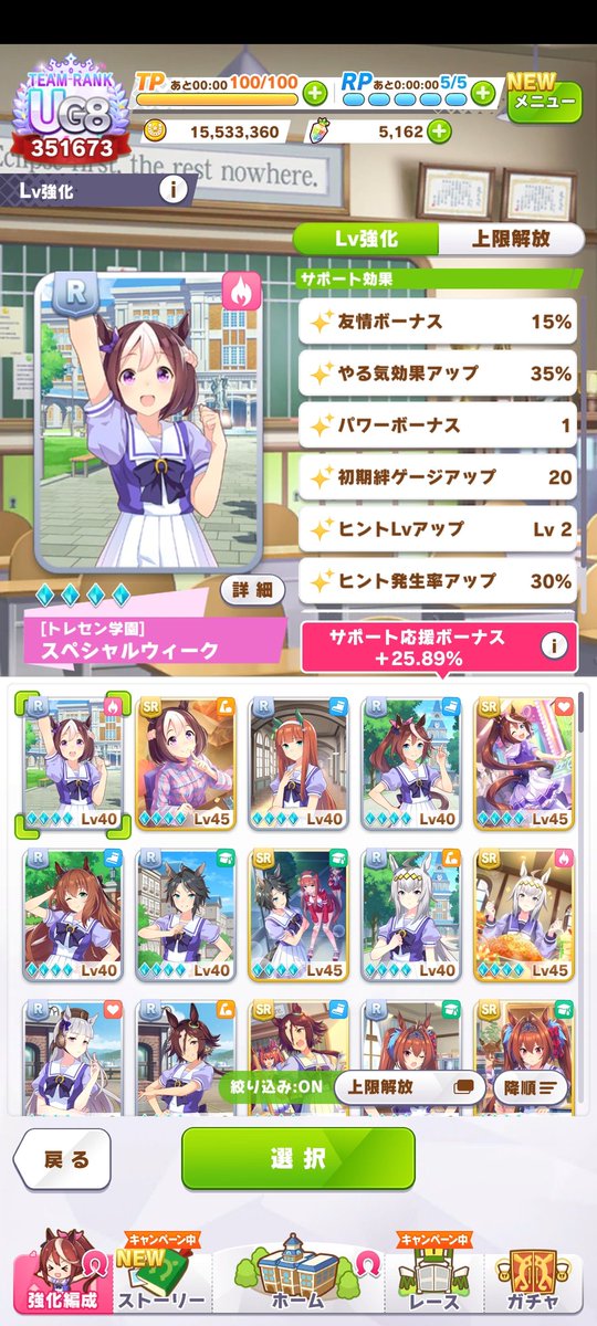 思い出したようにサポートカードのレベルを上げて応援ボーナスを稼ぐ作業中