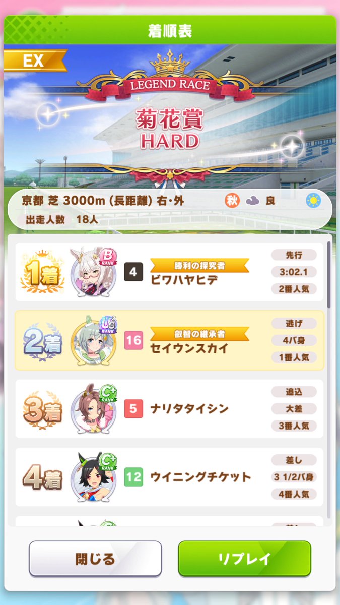 174: 名無しのトレーナー 2023/03/12(日) 22:39:52.35 ID:iTKd0FnRd上振れキタちゃん出来たからウッキウキでルムマ走らせたら微妙にスタミナ足りてないっぽくて泣いた