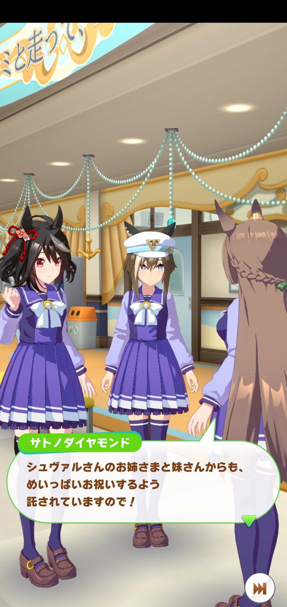 シュヴァルちゃん、誕生日おめでとう!前からも姉妹(兄弟)匂わせてましたが、しっかりゲーム内でも言ってますね…