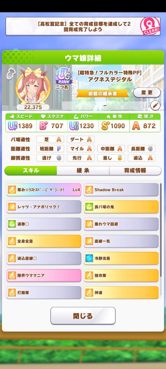 オグリとセットで使えば最速で友情発動して欠片集めに一役買ってくれそうな気もなくもない…得意率が無かったw