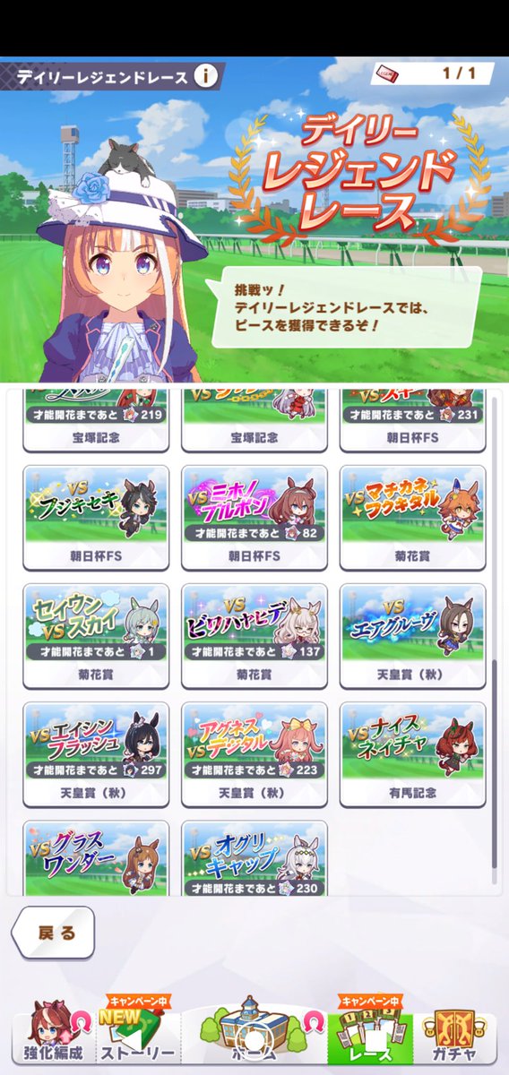 年間計画だこれ名無しのトレーナーでも今は1日2回できる!名無しのトレーナーあまりにもチャンミでマイルの層薄かったからタイキをデイリーでもらったの思い出す…名無しのトレーナーデイリーレジェンド2倍もお出しされるようになったしそろそろ緩和が進む雰囲気を感じる名無しのトレーナーオグリ好きならクリオグリチケで貰うのもありかもね