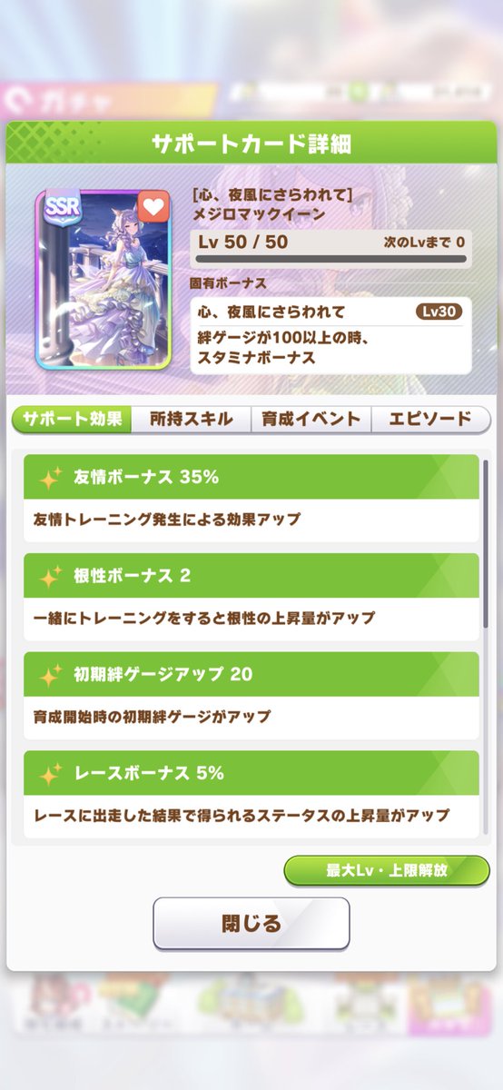名無しのトレーナー得意率結構高いな名無しのトレーナータキオン型の伸び率かいいね名無しのトレーナー練習性能はどうだろ名無しのトレーナーあれ根性ボーナスあるんだ