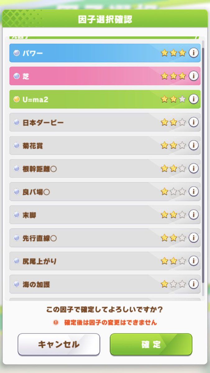 私もスピード系は変更したい因子がかなりありますね!これが別のステータスだったら…と思うことも