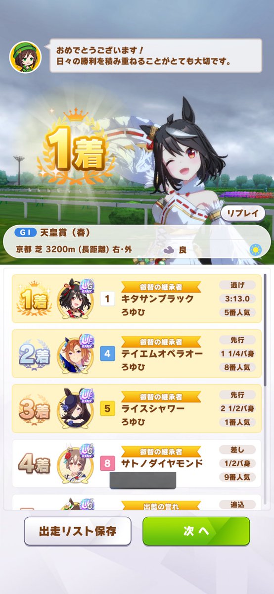 前回のチャンミのことを考えるとUFの人も結構居ましたが同時にUGの人も多かった印象。ただ三女神のサポカも実装されて育成にも慣れてきた人も多いからどうなんだろうなあ
