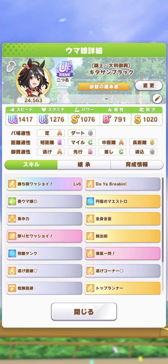 取得するべきスキル間違ってるけどすごくいい仕上がりのシャカールができたんじゃないかな!?とりあえずアリエス杯3枠暫定完成しましたねキタサト推しとしてはこれは勝ちたい pic.twitter.com/IXzuiJW3ma