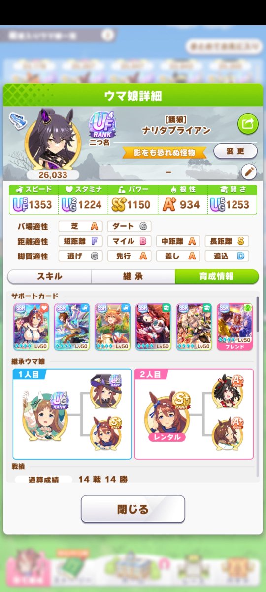 賢さが盛れないので根スペ外して賢さ2枚編成でラモーヌにしようか💡