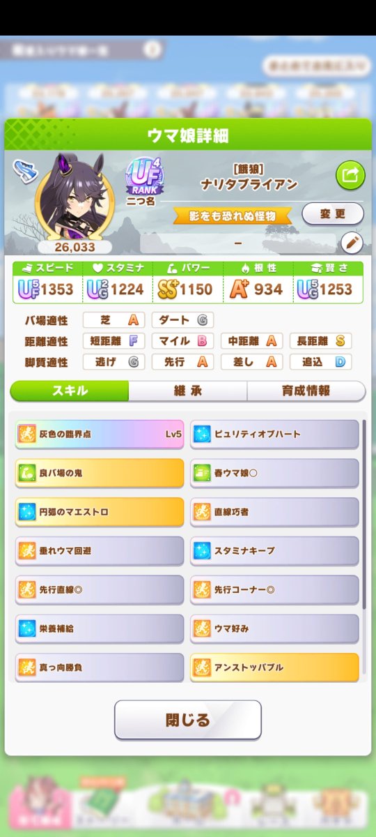 スピがなかなか伸びきらんが全体的にいい感じにまとまる32: 名無しのトレーナー 2023/04/01(土) 23:31:49.76 ID:7EskzLYW0スピフクのいいところはジュニア12月のステータスが高くて
