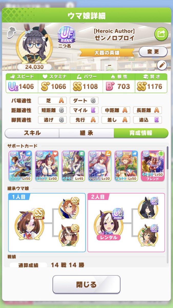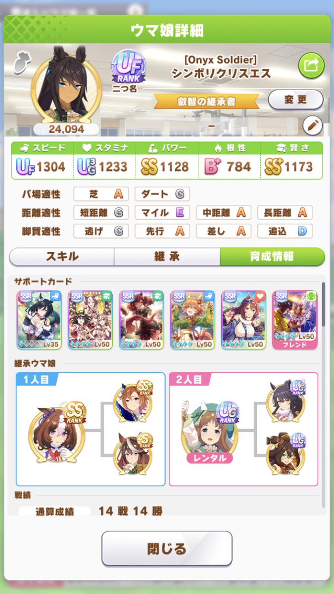 このまま続けようと思うが、先行の継承固有は勝ち鬨の方が良いのかな? pic.twitter.com/1cjgkN0SC6先行逃げが現時点でまだ少ないため選択肢としては◯