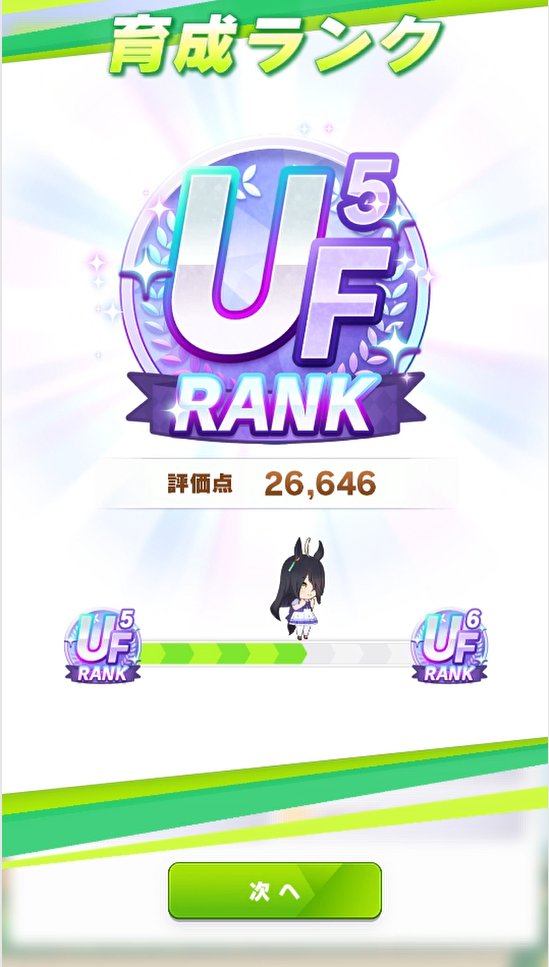 このステータスでもUEランク乗らないのか。スキルの数足りなかったかな…残念(^^;でもマンハッタンカフェ育成回数500回達成!!