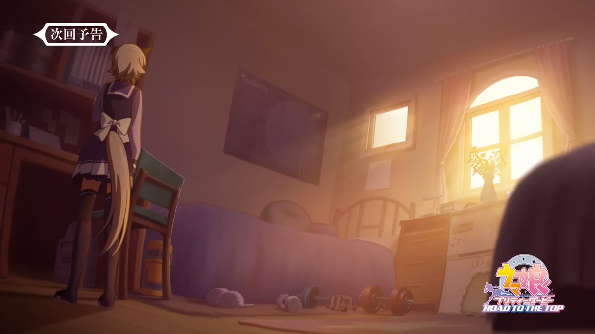 1話の部屋のカットだと死角に居た模様(=ω=【次回予告】アニメ『ウマ娘 プリティーダービー ROAD TO THE TOP』第2話「栄光の舞台」 youtu.be/7wcagz0RZa0アヤベさんの涙はやばい