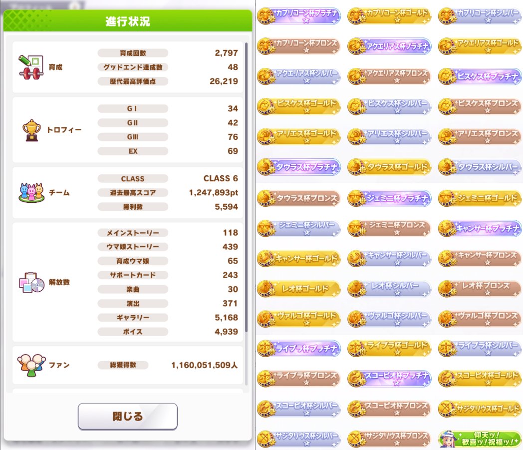 そもそも育成ウマ娘所持数が100超えしてて驚いた。いつの間にこんなに?
