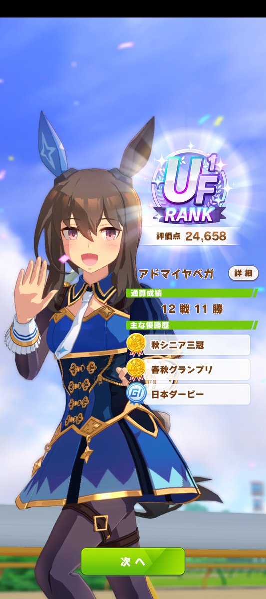 アニメを見ているとこの子の育成がやりたくなってくるのはあるあるですね!それに今回はダービーですから、アヤベさんを出走させようと思った人も結構居そう!