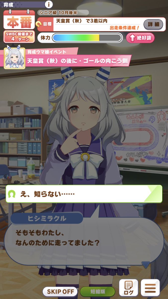 ゆるーい育成の中でも夢を探す展開とラスト4戦のお祭り騒ぎが重なって楽しいシナリオだった