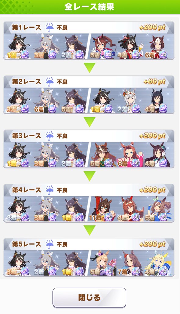 ※ブライアンは誕生日育成1回のみ。奇跡。また、不良馬場があからさまに良く、アイテムのお世話になりました。 pic.twitter.com/ZRXppyBmmH