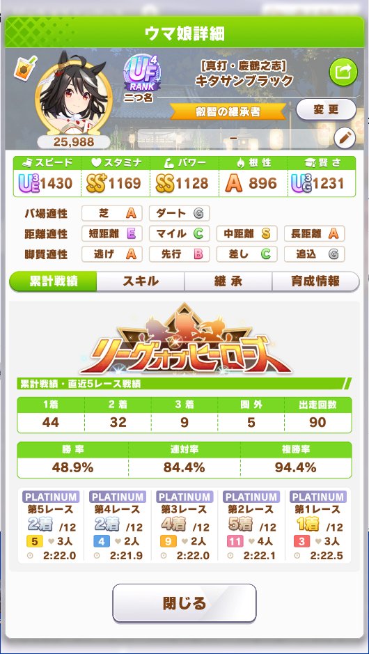 管理人さんと同じ編成だけど勝利数は白キタ、テイオー、チョコボンの順でした