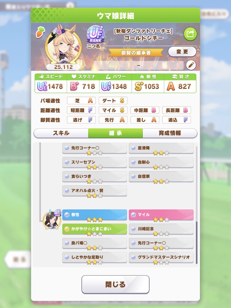 先行白キタサン因子も欲しい差しのいい因子が欲しいそろそろ中距離因子欲しいですね。