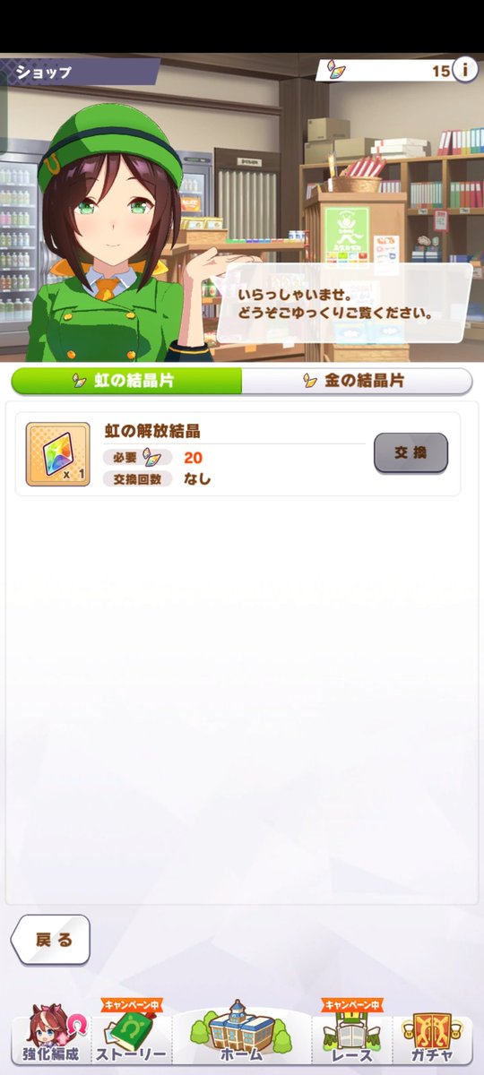 これ、虹の結晶片が20個貯まる方が先じゃ…。虹結晶貯まったんだけどマルゼン2凸にするかラモーヌ2凸にするかで悩んでる虹結晶ゲトったら何に使うかな