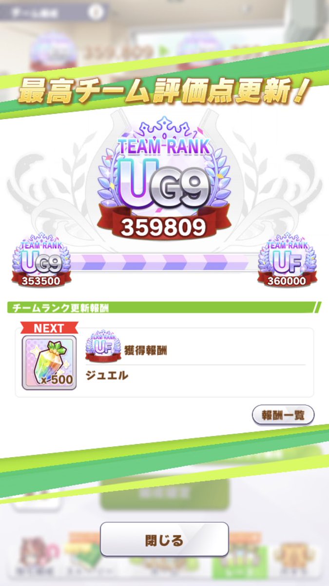 最強チーム何とかも来月あるから、評価点が低い子たちを育成してる。大体、中長距離組だから、ファン人数稼ぎも出来てヨシ!チーム評価点、ギリギリUFラインまで届かなかった。