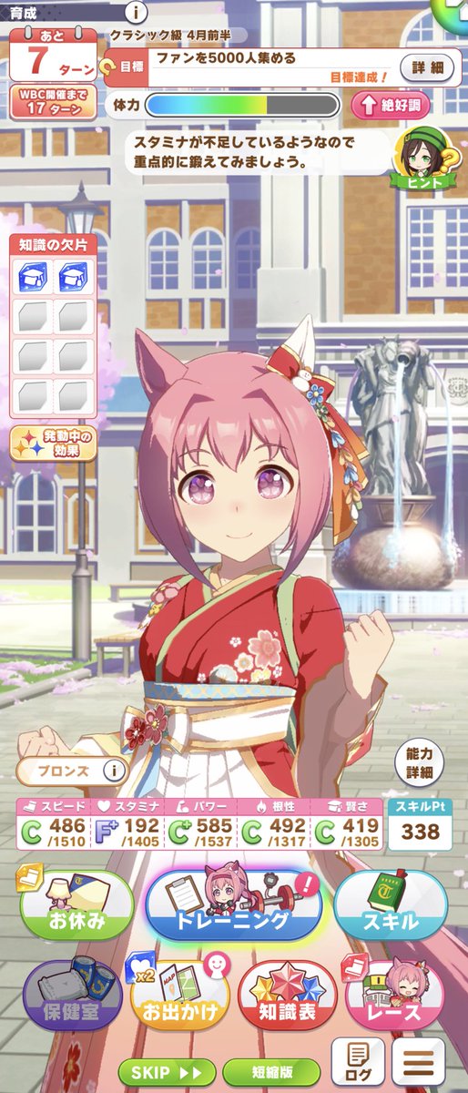 ウララ、何回育成したか数えてないがここで今までの全てを出し切って完成させたい!ステータスも、まあ悪くはないレベルで確保できてる! pic.twitter.com/uysMVvM7as