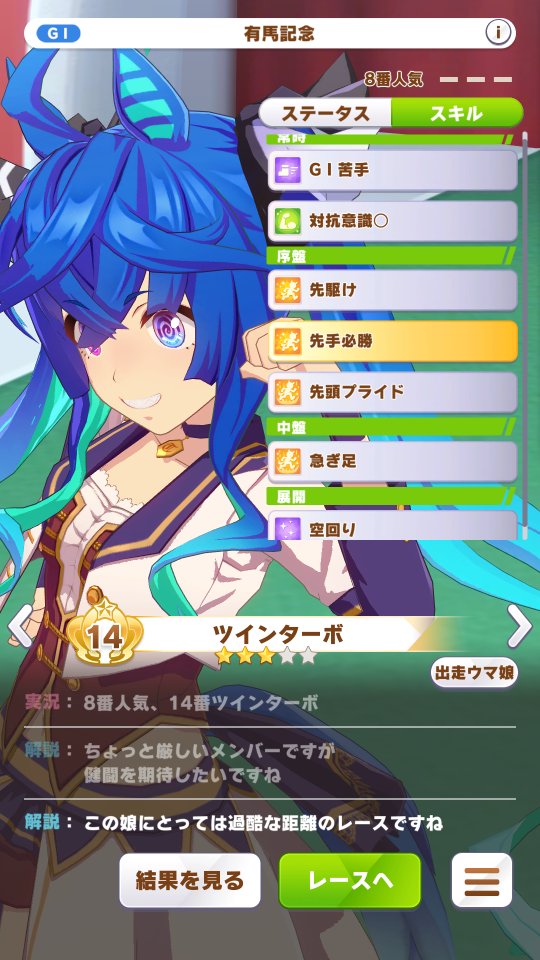 ターボちゃんG1苦手持ってるのかわいいg1苦手と空回り付いてるのツインターボらしくてほんとすこターボさん、空回りとG1苦手のスキルとてもいいですね