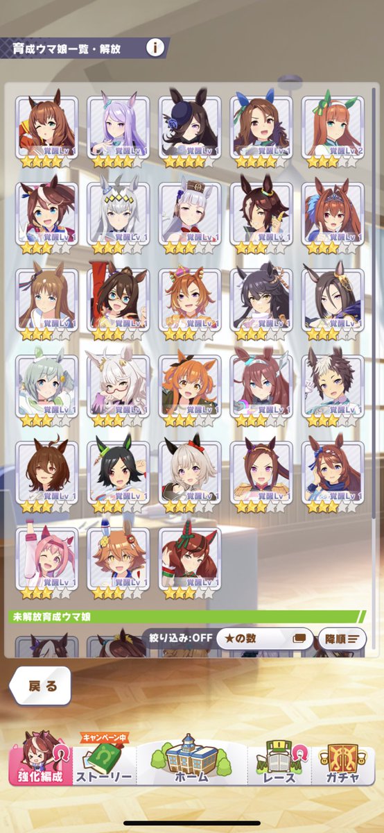みんな所持済みだけど未育成のウマ娘結構おるんやなあ12人ぐらい未育成のウマ娘がいる