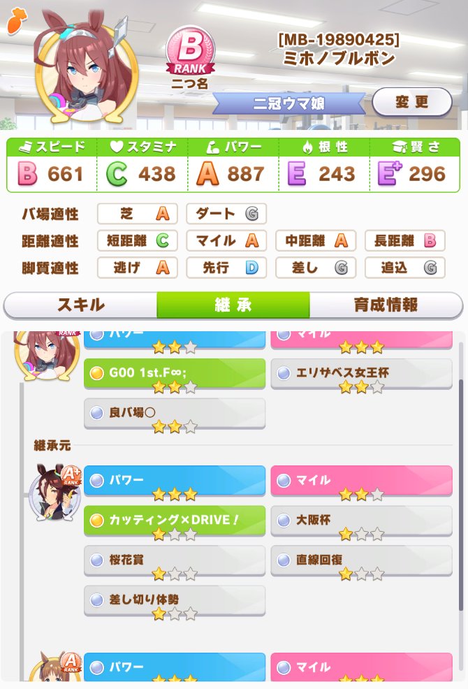 パワー9やスタミナ9の因子自前で用意出来ないと色々不便な事に気が付いたので因子周回するか因子周回無理すぎ???【理想】