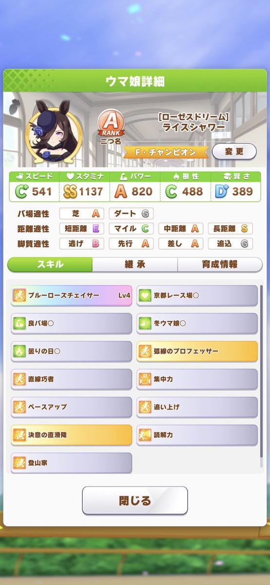 因子スタ因子多めでキタクリヒシアマハヤヒデレンタルキング+自由枠でスピパワスタBSSSSって感じやね