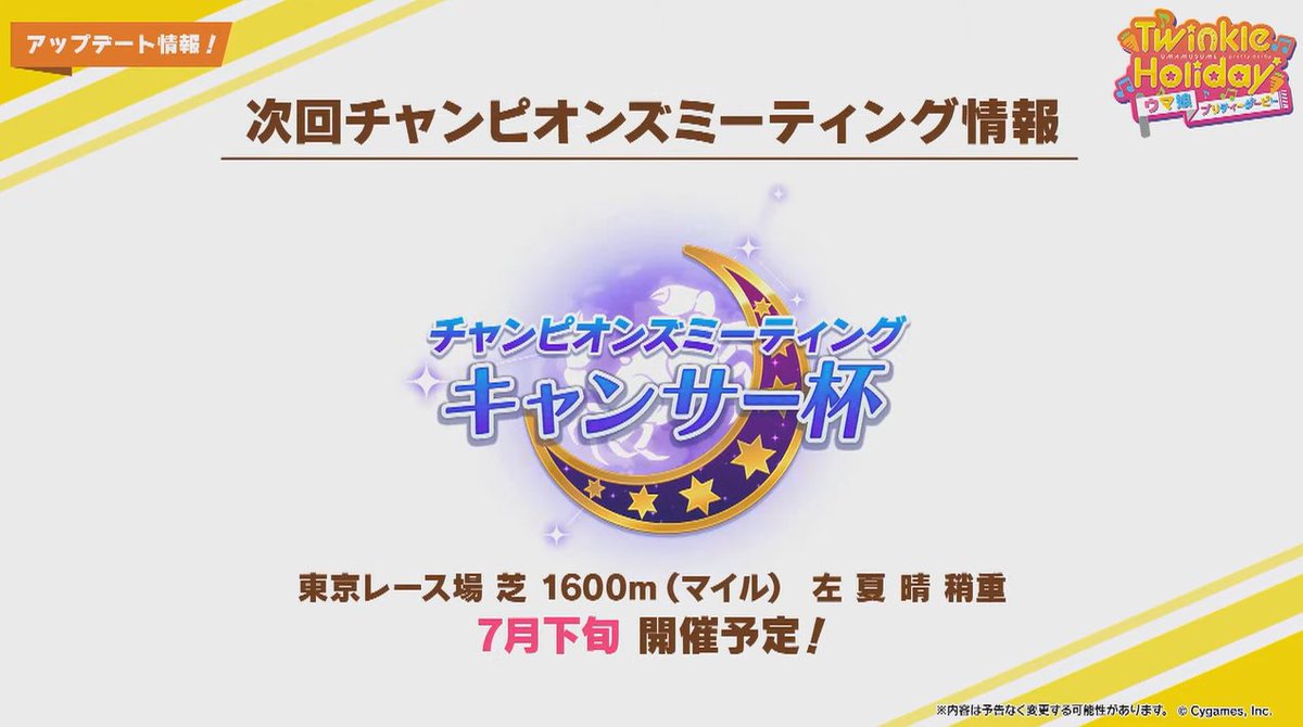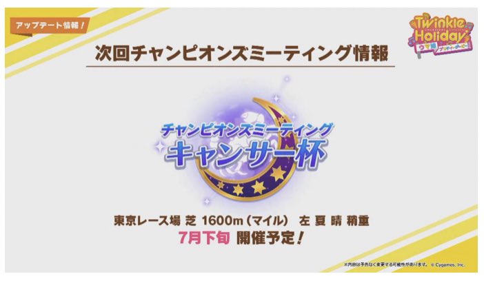 【ウマ娘】チャンピオンズミーティングのキャンサー杯はマイルに決定!開催日は7月下旬予定だよ!