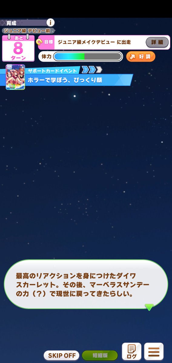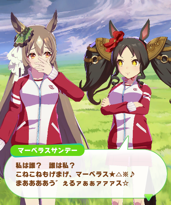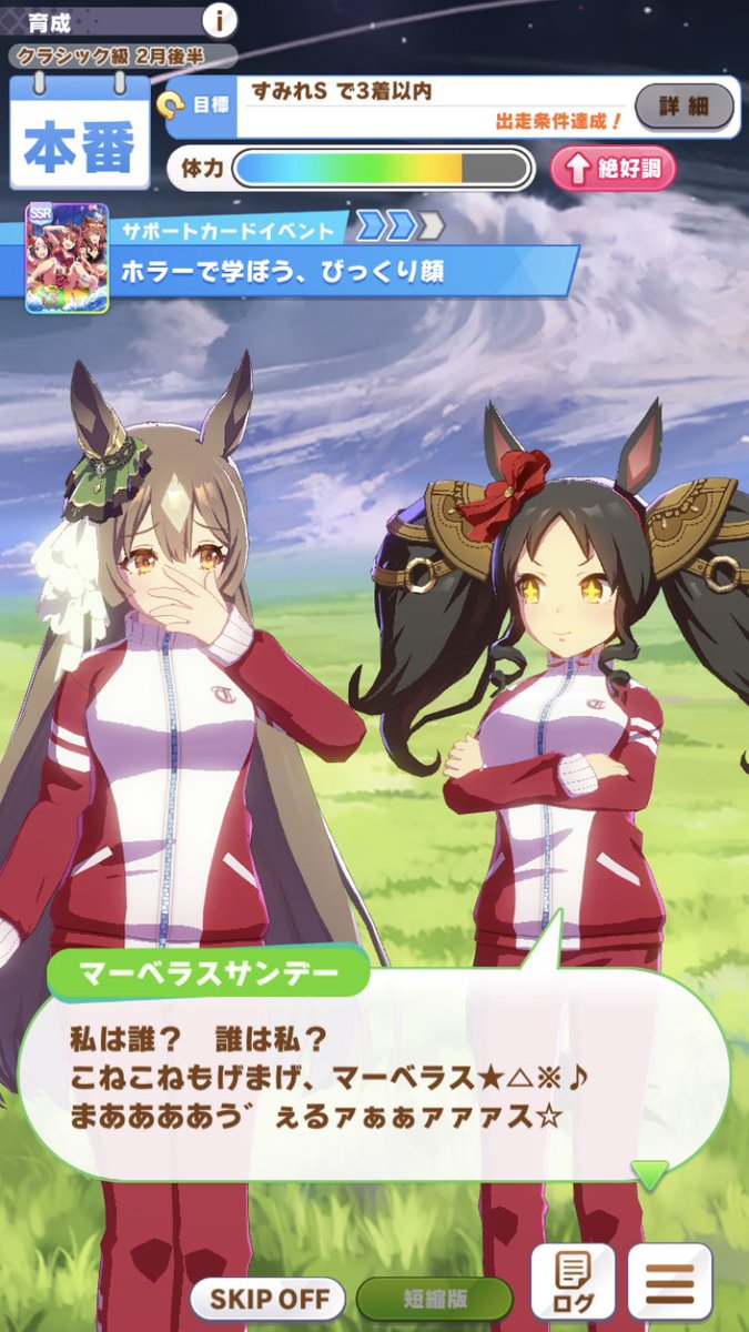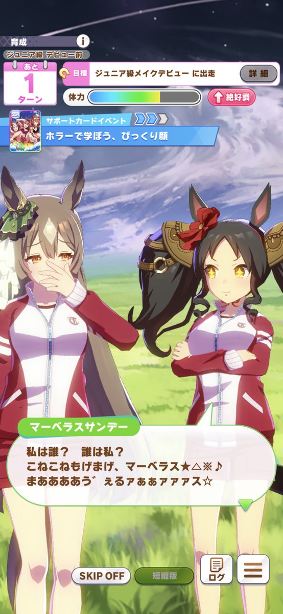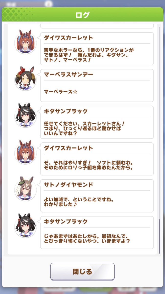 マーベラスの怖さはなんか精神崩壊系ですね@kyreyu マベちゃん割と本気で怖かったです?@mashirahoshi 文字化けじみてるのが恐怖を煽りますね…リアクションも一番楽しいウマ娘を目指すダイワスカーレットさんの話、あの3人をロリっ子扱いしてるのも謎だしキタちゃんの雑なホラー話で早くも死にかけてるのも凄いしマーベラス空間は普通に恐怖体験だしでホラーで学ぼうのマーベラスのターンバグってる感じが普通にビビるんですが‼️‼️ダスカのホラーシナリオ、人によってはガチでトラウマになるのでは?イベ配布ダスカのイベントに出てくるマーベラスがめちゃくちゃ怖いイベダスカのイベント、ウマ娘で一番やべえのがマーベラスだってはっきりわかるやつ配布ダスカちゃんのイベントに出てくるマベちんやばすぎて大好き、これがマーベラス計画…