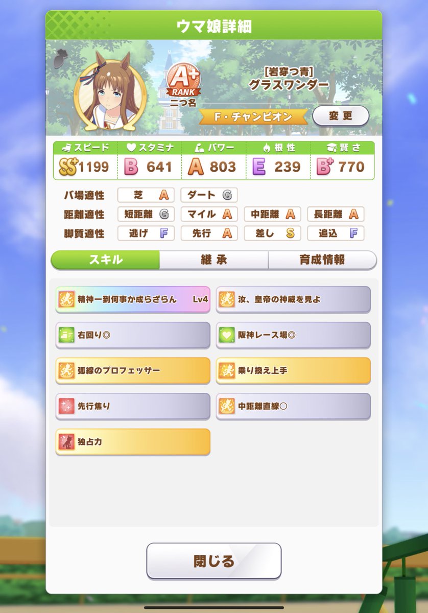 欲しいスキルてんこ盛りだからマジでスペースが見当たらない…ヘイローとの選択になるかなぁ… pic.twitter.com/Bpr51N3926#レオ杯 のためグラスちゃんばかり育成しています。