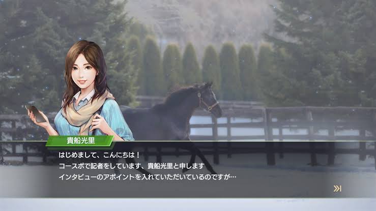 競馬三昧ですの『ウイニングポスト9 2021』、シンプルに凄く良く出来たゲームだと思うし、やればやる程、ゲーム内の競走馬やキャラクター達に愛着が湧いてきて、一先ずのエンディングを迎えた後も、ずっと遊びたくなる。『ウマ娘』きっかけで、初めて遊んだ競馬シミュレーションだったが、超自分に合ってた。『ウマ娘』で、終始、“かかり気味”に取材をしてくる乙名史悦子記者という名物キャラがいますけど、『ウイニングポスト9 』にも、同じく、かかったテンションで取材に押し掛けてくる貴船さんというマスコミの人がいまして…この人、乙名史さんの元ネタだったりするんかな。 pic.twitter.com/fz76Na3WVBウマ娘から競走馬にハマって、今ウイニングポスト始めてますウマ娘とウイニングポストを交互にやることで無限に楽しめる