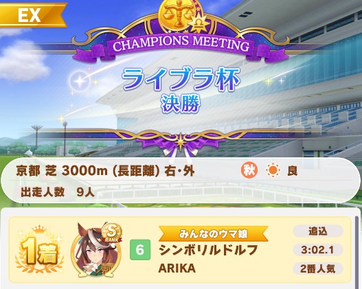 よくよく思い返すと今までの全チャンミ、グラスが皆勤賞に加え1回以上勝ってる事に気付いてビックリしてる。ちなみに今回1番勝ってるのは意外にもテイオーだったり