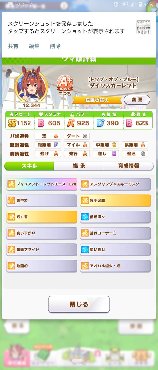 今のところ野良でやるとウオッカなら時々勝てるぐらい・・・@mobamas841 ウィンディは1凸なんですよね?逃げ作るのしんどくねこれ シチー先に完成させようかなぁこれは…逃げの完成度で勝敗分かれるやつか…?1200/700(600)/800/400/900