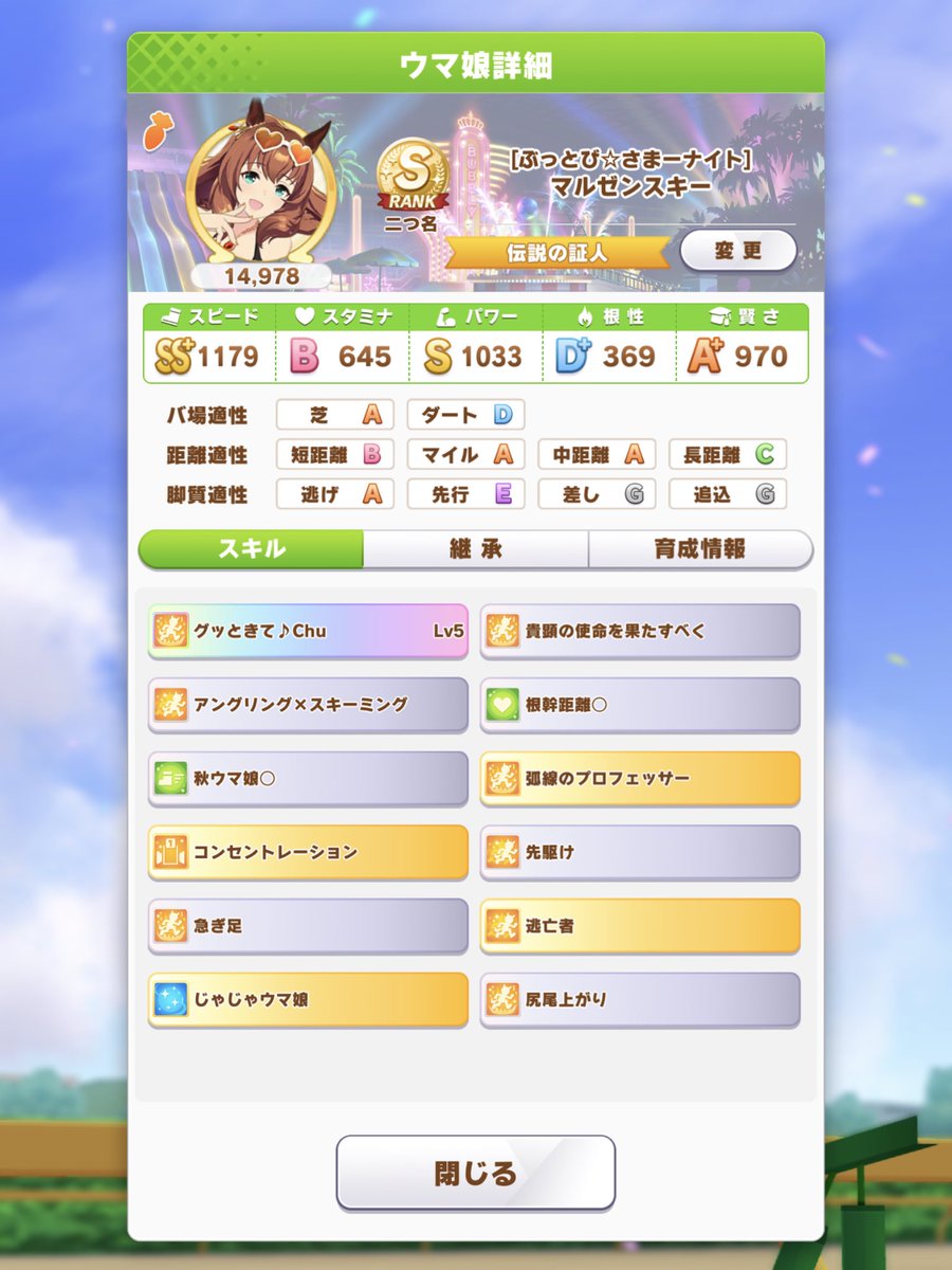 先頭取らないと意味が無いからパワーと賢さ、スキルが必要でかつスピードカンストと走れるスタミナ?