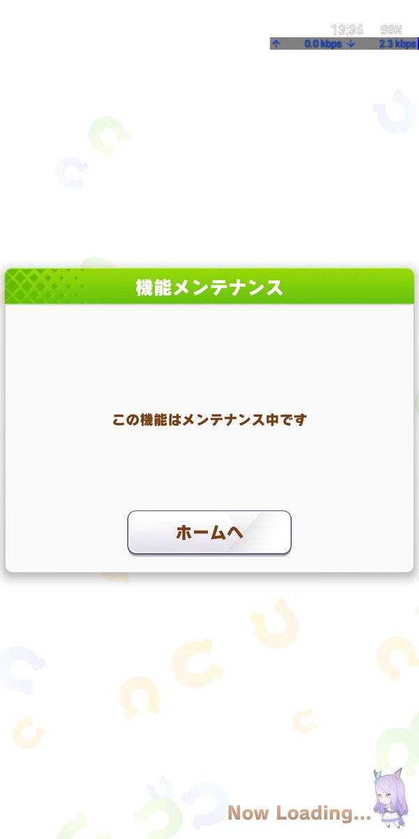 ウマ娘メンテしてるっぽい?ウマ娘のレースこの機能はメンテ〜って出て出来ない…ウマ娘メンテしてる?ウマ娘さんメンテメンテ出まくるのでそっ閉じ?ウマ娘、レジェンドレースやらがメンテになってるあれ、ウマ娘のレース関係全部メンテ中か?あれ?ウマ娘メンテ?ウマ娘でレース系の機能がメンテ入ってる?