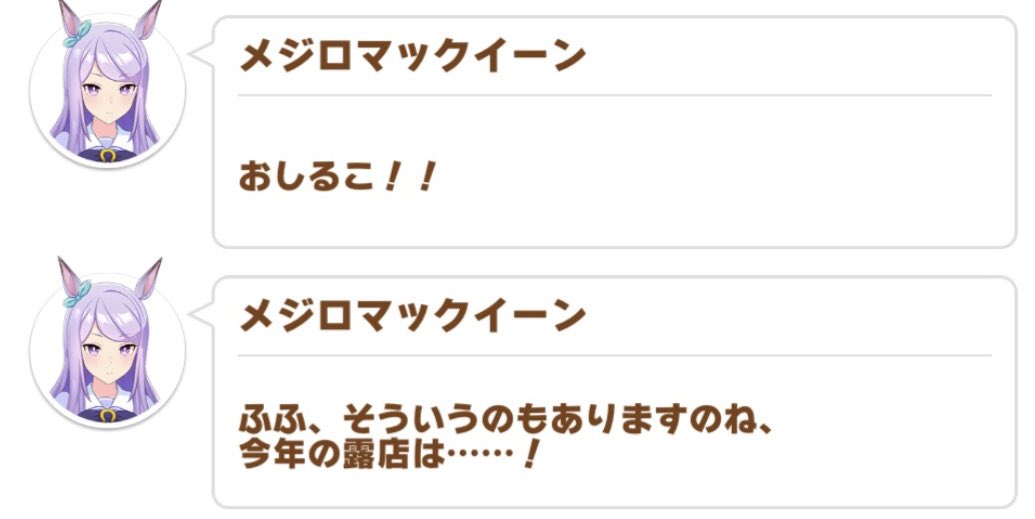 メジロドーベルちゃんの育成ストーリーで見ることが出来る初詣。そのときのマックイーンちゃんの反応が年相応で可愛らしい……