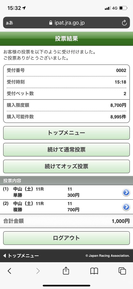 レース結果・払い戻し
