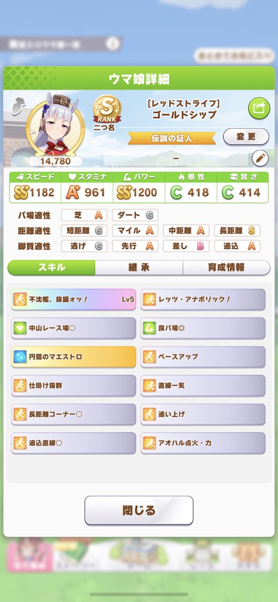 ゴルシめっちゃいいスキル取れたけど距離適正伸びなかった???
