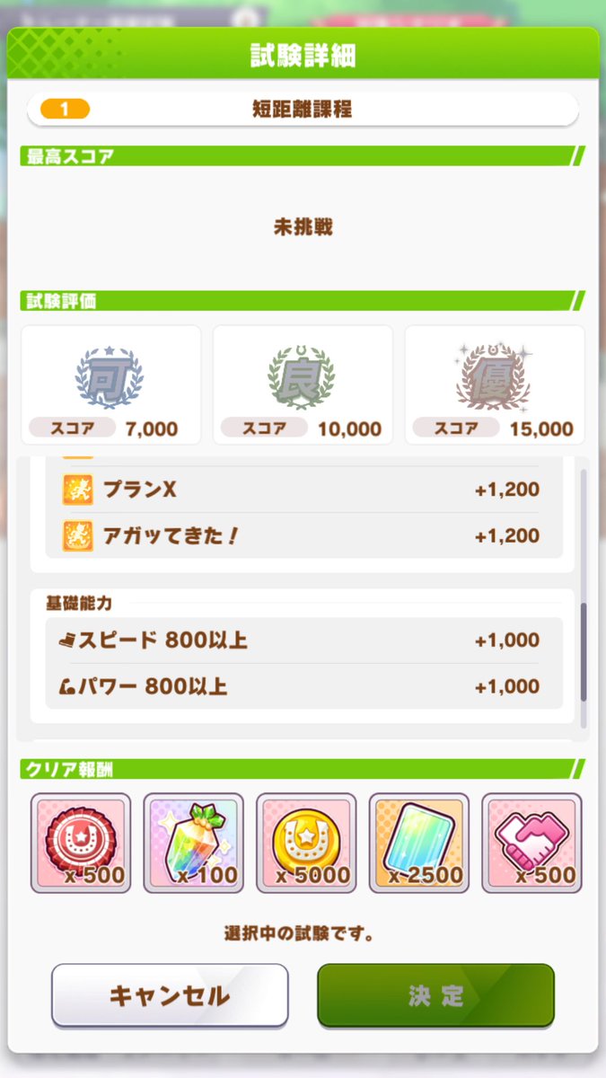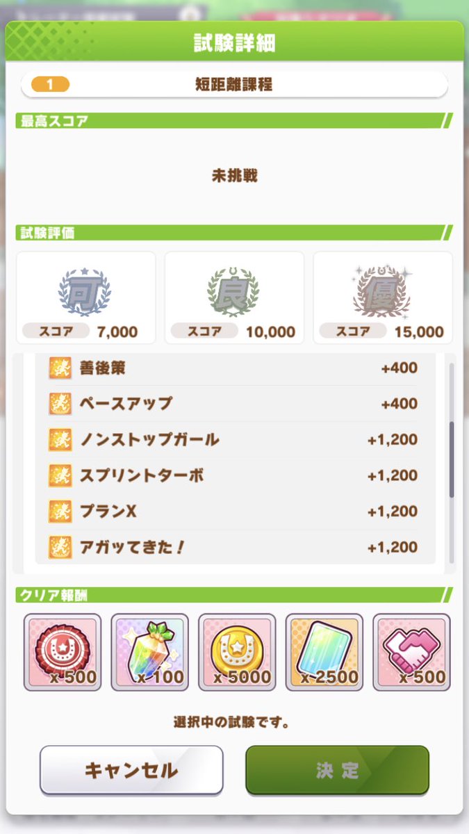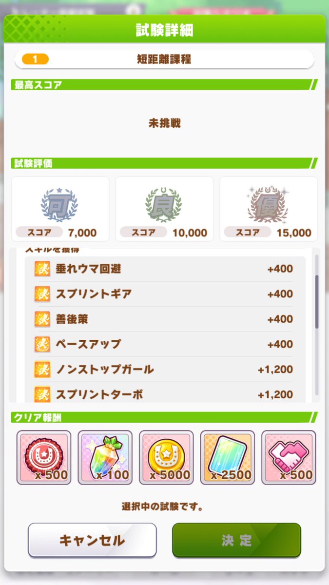 サポカ強い人ならキャラ評価点がもっと上がるから1育成1000コイン稼げるのかな?pic.twitter.com/wHuawpYVOS Sトレーナー試験(自分的メモ)●短距離課程