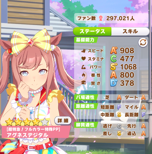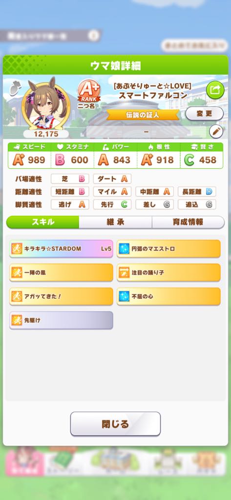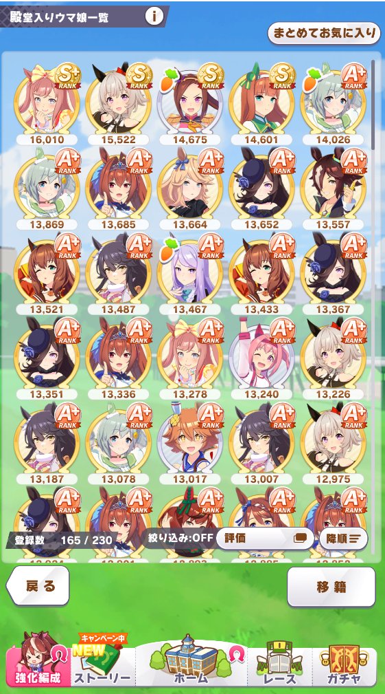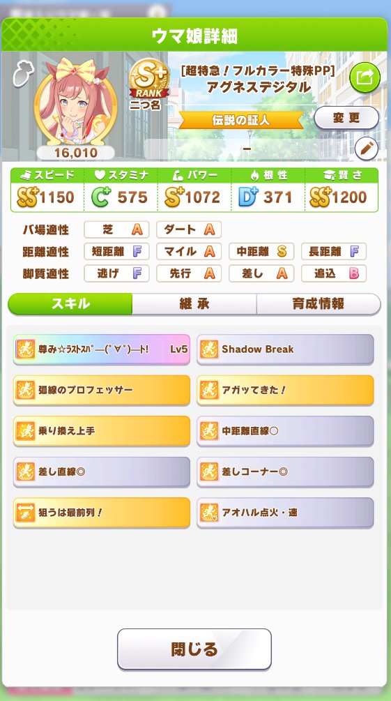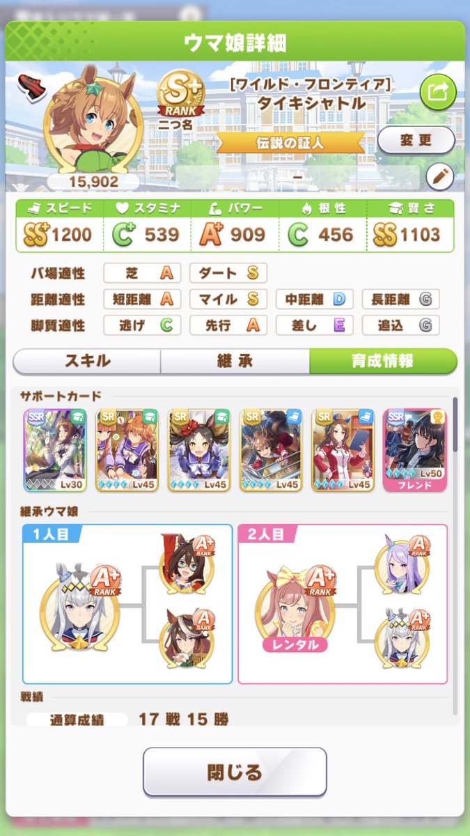 ダートだけは結局スピ賢育成で評価点上げてごり押しした感じ。他の距離はレース出つつでもクリアできたので簡単だった。@e5o1sm ファン活より素直にスピ賢やった方が伸びると思いますよほぼSR編成でも相当上振れて補正いいキャラならこれくらいの評価値出せて27000くらい行くと思います