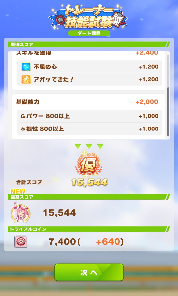 トレーナー検定試験であとはダートのみ。「優」評価を得る為にデジたんの「狙うは最前列」は必須。なので一気にデジたんを覚醒MAXにしてやったぞい?マニーも一気に減ったけどね�pic.twitter.com/llDE506k5P 5Pトレーナー技能試験のダート項目、パワー根性800を目指したら根性がかなりきつかったけど、ピッタリ800乗って無事一発優でクリア…