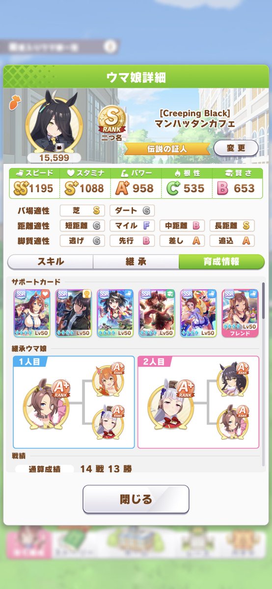 得意率とあげませんが叩かれてるけど、元々上振れ狙うゲームやから☺pic.twitter.com/2OKpKgZ1Xa Xa@yuki_1218F 具体的なサポカは参考にならないかもですが、追込み育成カフェの例となります