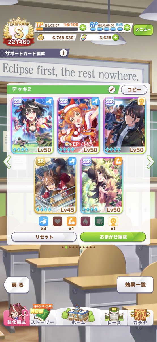 782: 名無しのトレーナー 2021/12/16(木) 02:29:10.43 ID:j+Ix/AUda追い込み作るのにどんなサポート編成でやってますか。おすすめ求む。SSスピードゴルシ