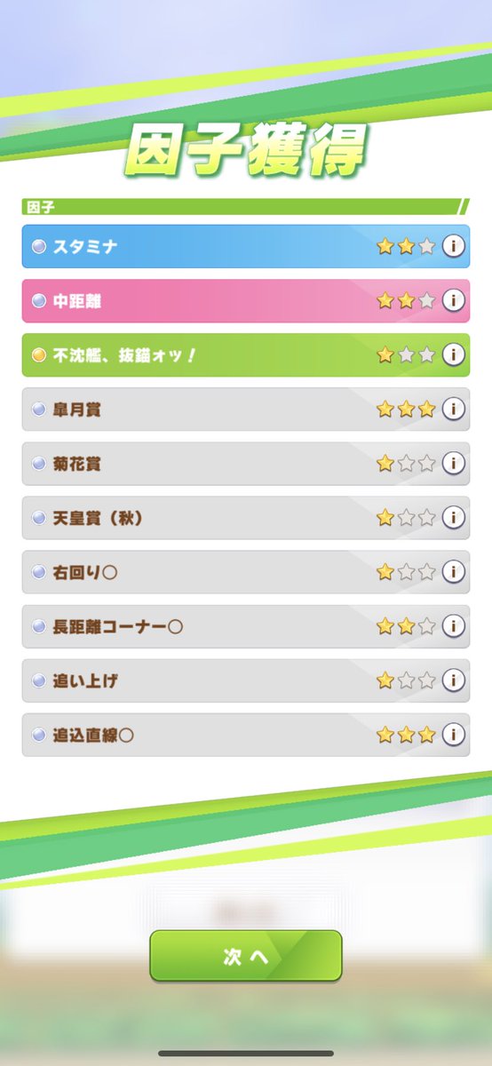 通りで毎回パワだけあんまりあがらんのかスピスタパワ賢さのどれかが☆2で、赤は逃げ以外のなんかであればもう採用するのに、因子用ウンスが15連続で青1なのいくらなんでも呪われすぎてる