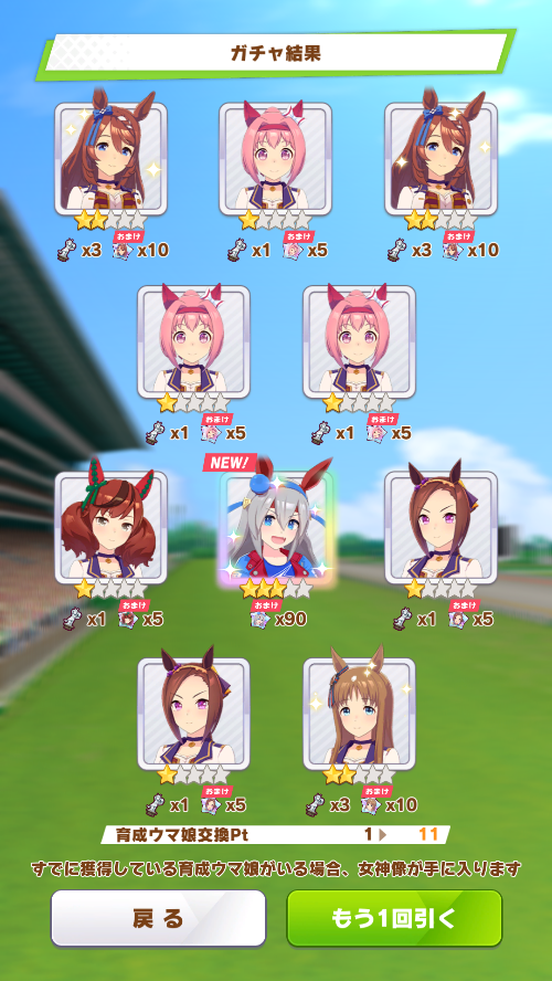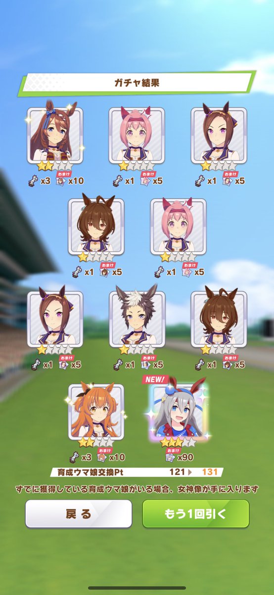 10連無料の初日の10連でタマが来ました。前日有馬での大敗も癒え思いっきり泣きました。名無しのトレーナー